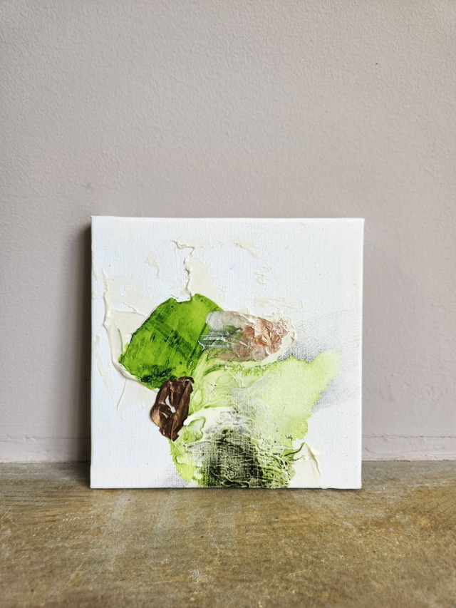 心の奥底に眠る、言葉にできない感情や想い。 そのかすかな気配を色と余白で掬い上げたような一枚です。まるで夢の断片を形にしたかのように、静かな中にも確かな存在感を放ちます。眺める人によって異なる心象を映し出し、日々の中で新たな発見や気づきをもたらしてくれるでしょう。 一点だけでも強い存在感を放ちますが、複数並べることで心の連なりを表現するインスタレーション的な雰囲気を生み出すことも可能です。キャンバスとアクリル絵具が織りなすシンプルで力強い世界観は、インテリアとしても、心の鏡としても長く寄り添ってくれる一枚となるでしょう。 ※商品画像はお客様のご閲覧の環境によって、色味など実物と若干の違いが生じます。 ※掲載写真の中で複数の作品が並んでいるものもございますが、販売対象は本作品1点となります。 ・画材:キャンバス、アクリル絵具 ・サイズ:15cm×15cm ・制作年:2024年