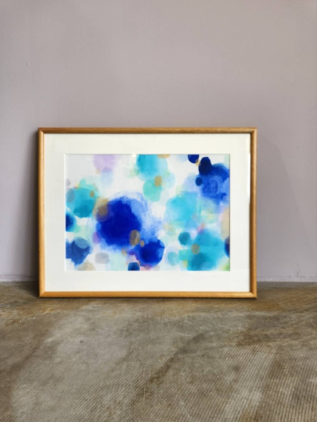 アクリル絵の具で紙に描かれた「静かなぬくもり」は、心を包み込むような安心感と落ち着きをテーマにした一枚です。その穏やかな雰囲気の中には、ふとした瞬間に感じる小さなときめきや、胸の奥で眠る高揚感も秘められています。 空から降りそそぐ光にも、雨粒がきらめきながら舞い落ちる姿にも見える表情は、観る人の心境や想像力によってさまざまな物語を生み出します。その自由さが、この作品の最大の魅力です。 お部屋に飾れば、ただ空間を彩るだけでなく、日々の暮らしに「静けさの中のぬくもり」と「心が少し弾む瞬間」を運んでくれるでしょう。リビングなら穏やかで居心地のよいひとときを、寝室なら一日の終わりに安らぎを与えてくれる、暮らしに寄り添うアートです。 ※商品画像はお客様のご閲覧の環境によって、色味など実物と若干の違いが生じます。 ※商品内容には額縁も含まれます。 ・画材:紙、アクリル絵具 ・サイズ:53cm×41cm×2cm ・制作年:2025年