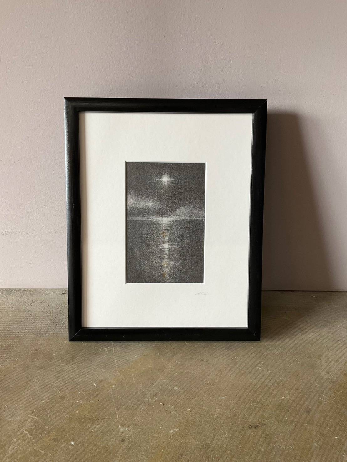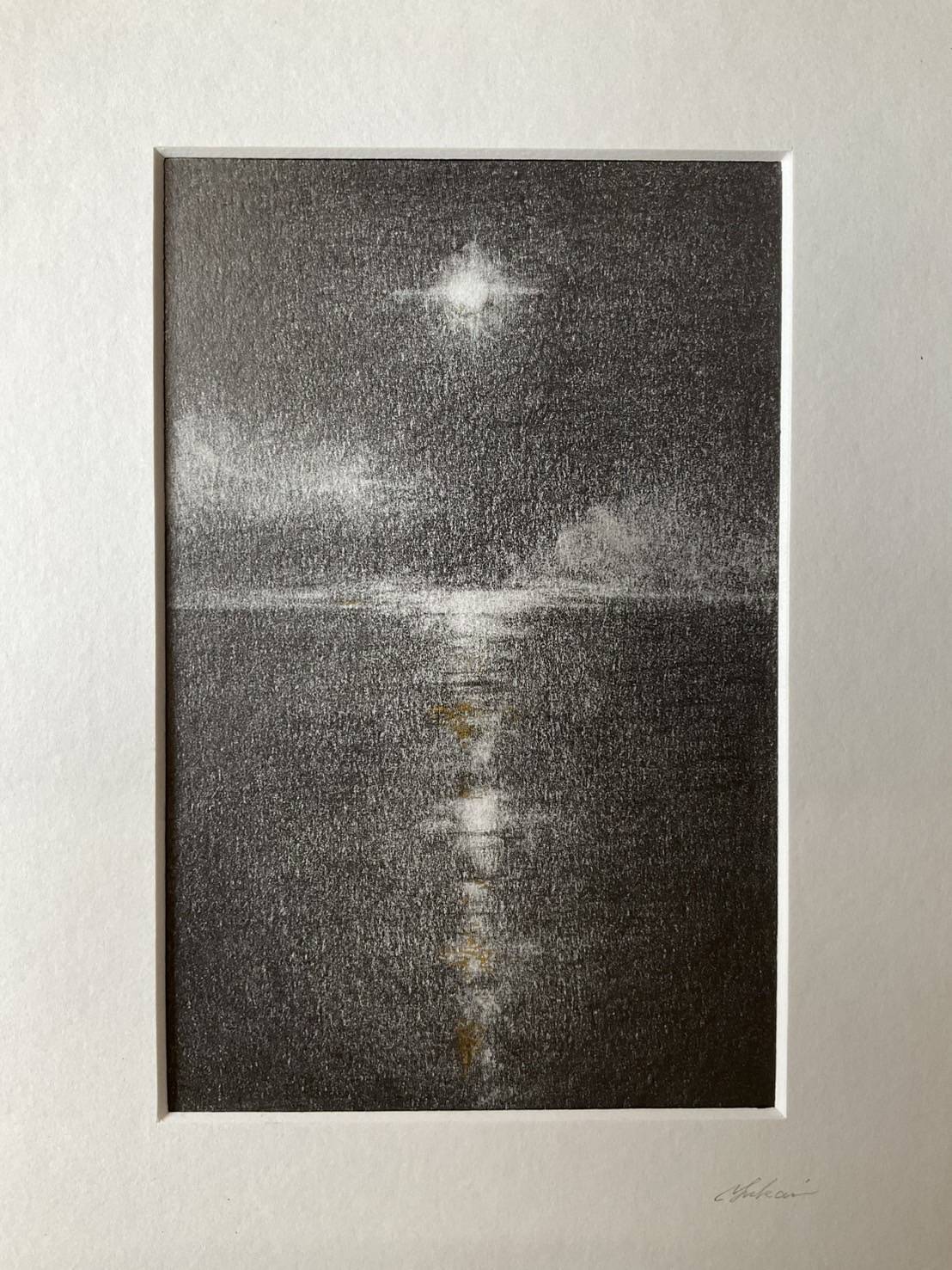 「月影」は、深い闇に包まれた夜の海と空を、月明かりがやさしく照らす情景を描いた作品です。