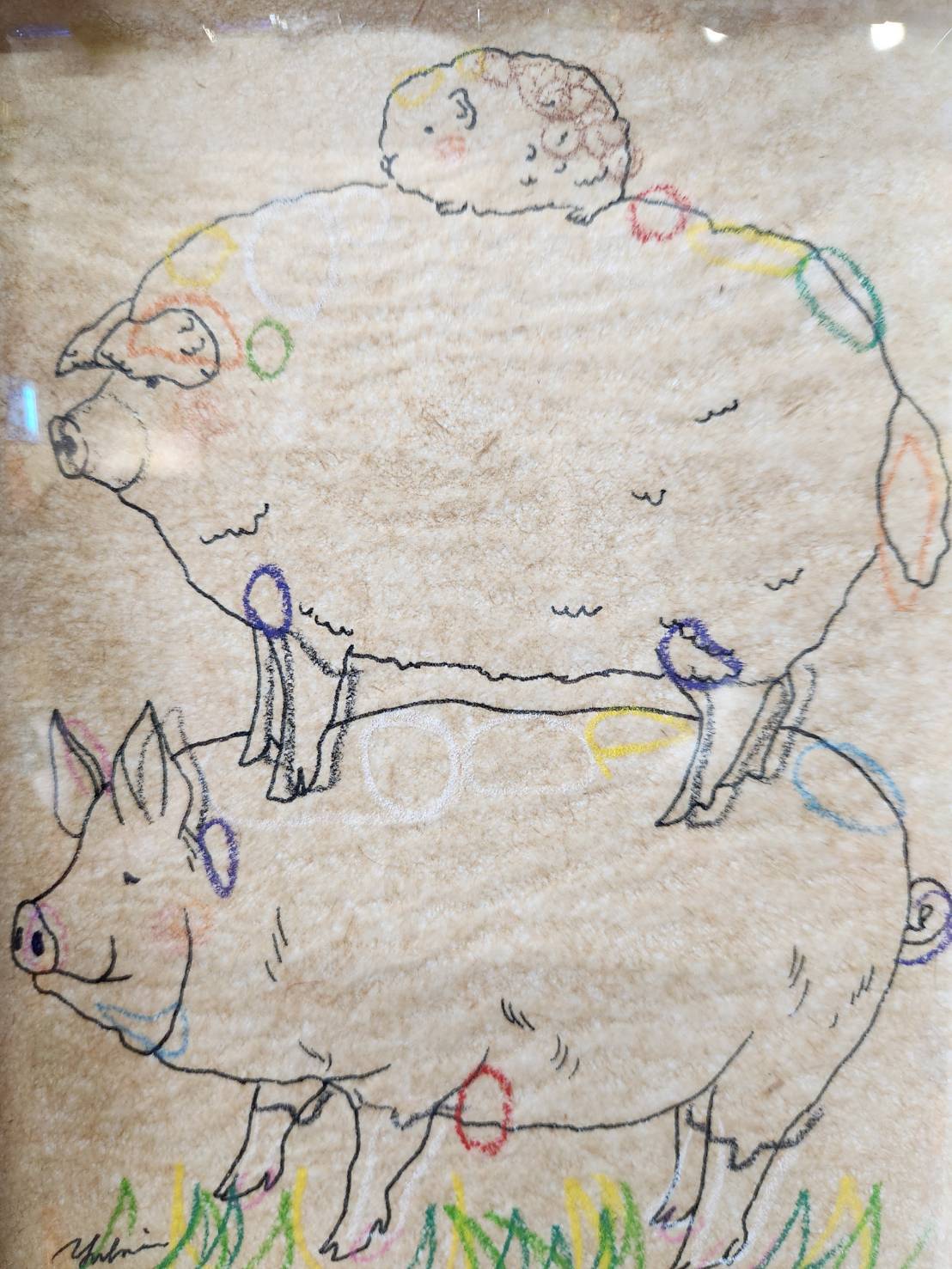 黒豚、マンガリッツァ豚、そしてその上にちょこんと乗るテディモルモット。