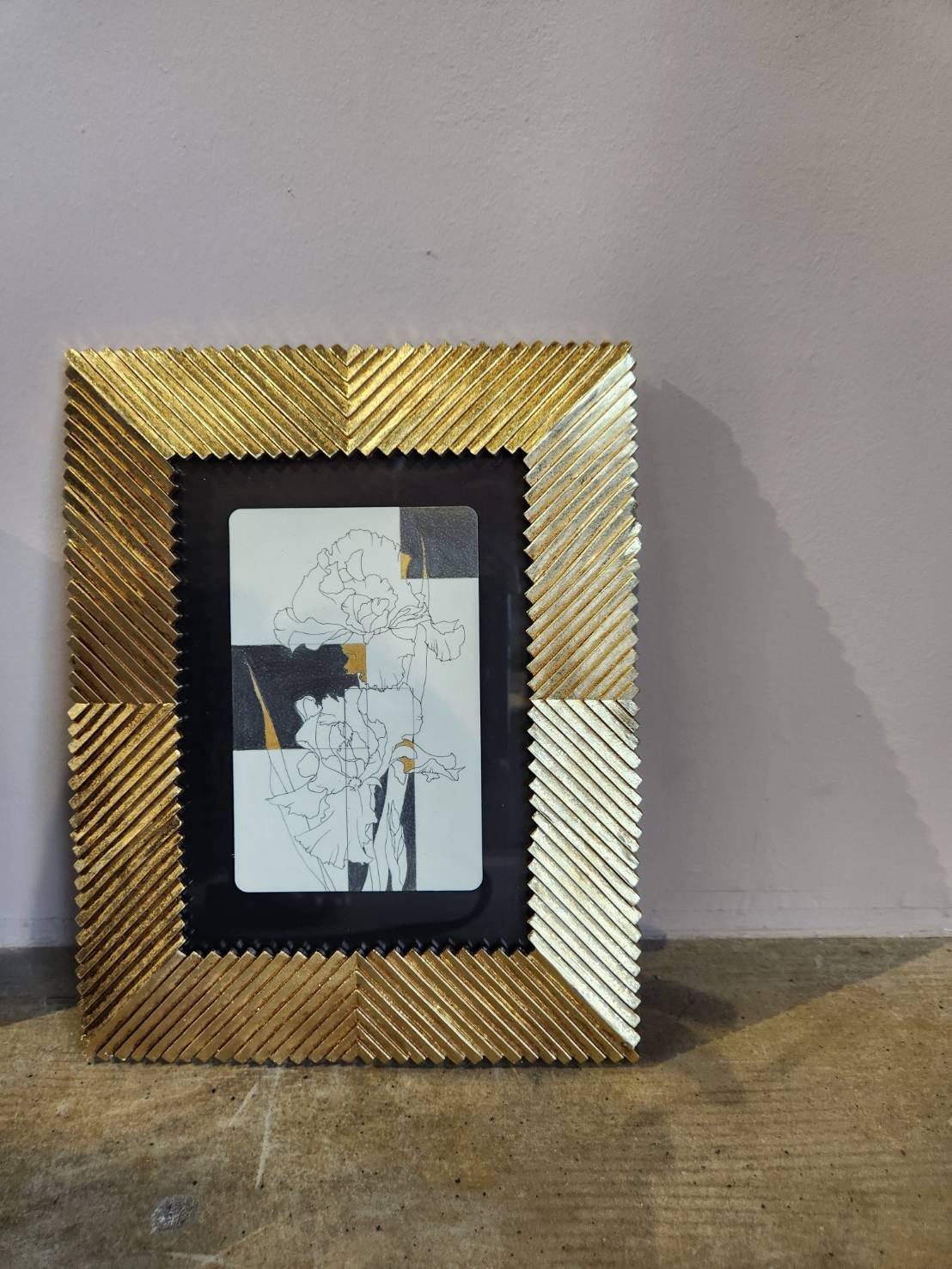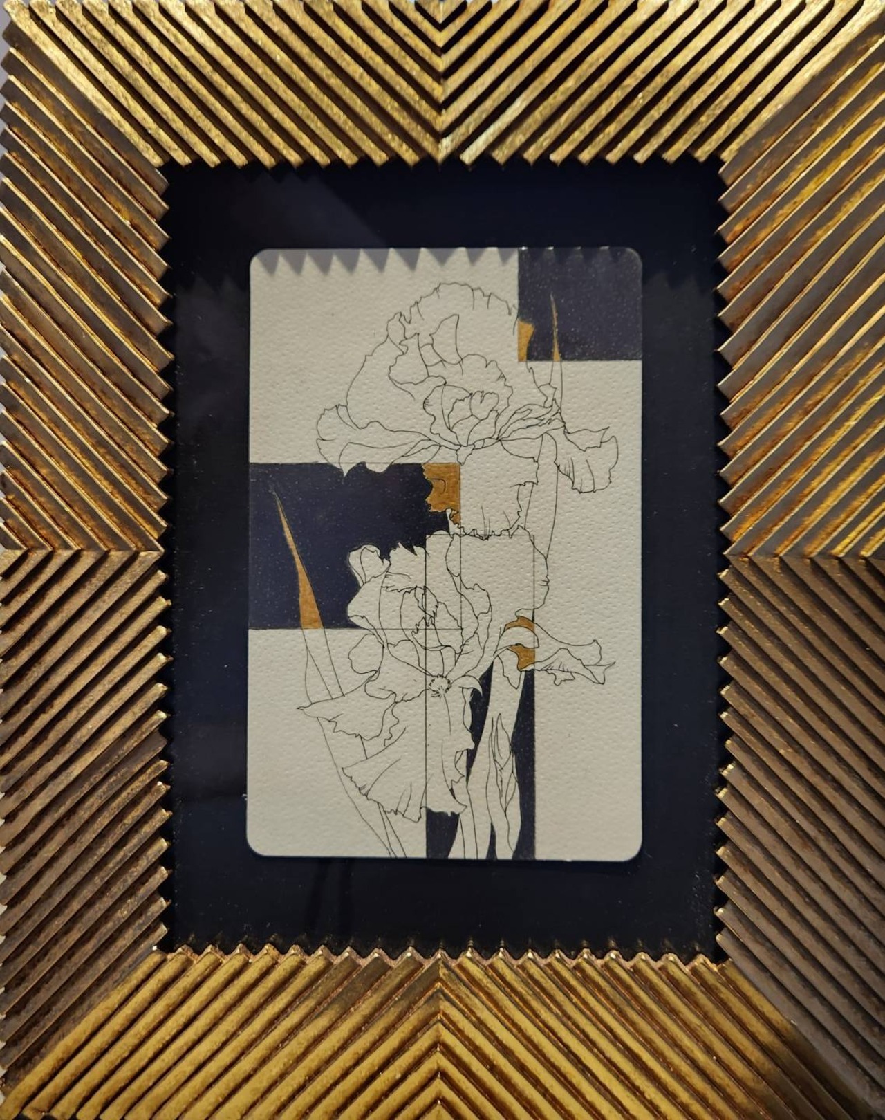 ゴールドの額縁が作品全体を引き締め、ラグジュアリーな印象をプラス。インテリアとしてもひときわ目を引く一作です。