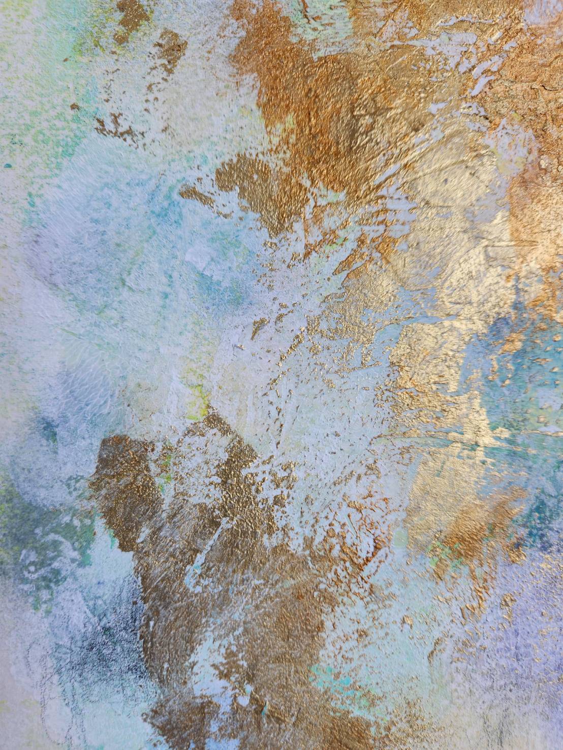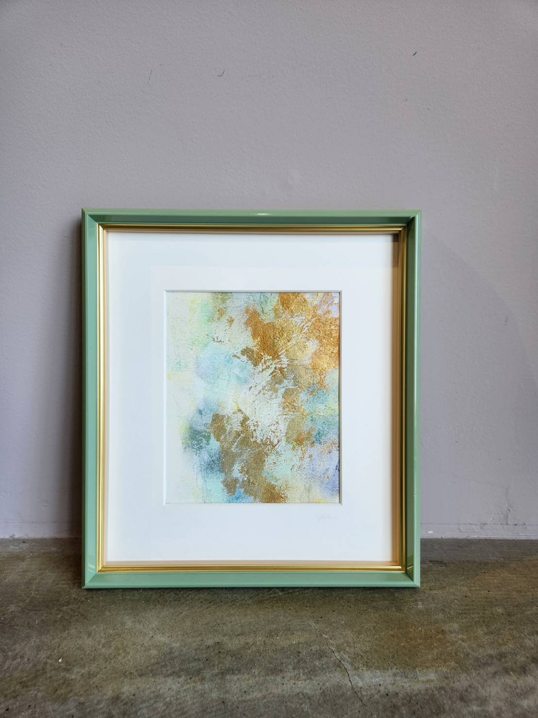 抽象的な表現の中に、未来への希望や静かなよろこびが織り込まれたこの作品。