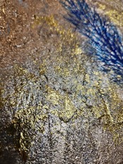 ゴールドの華やかさとブルーの深みが調和し、観る人の心を静かに揺さぶるこの一枚。