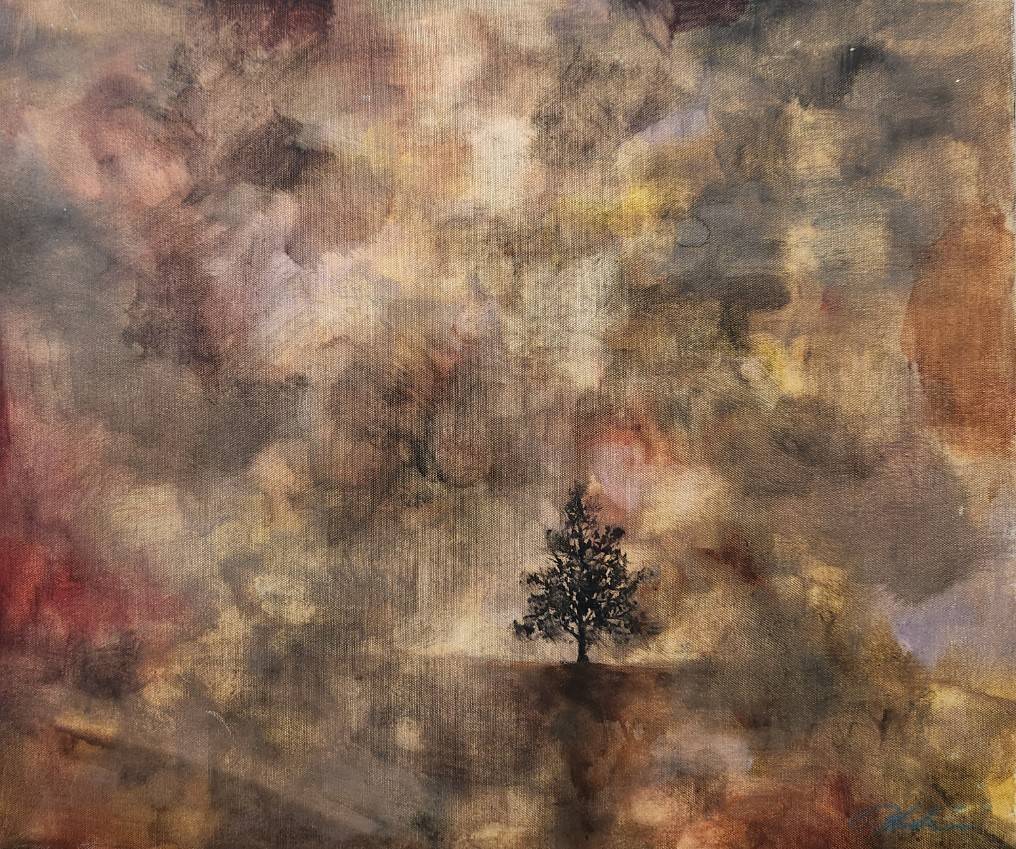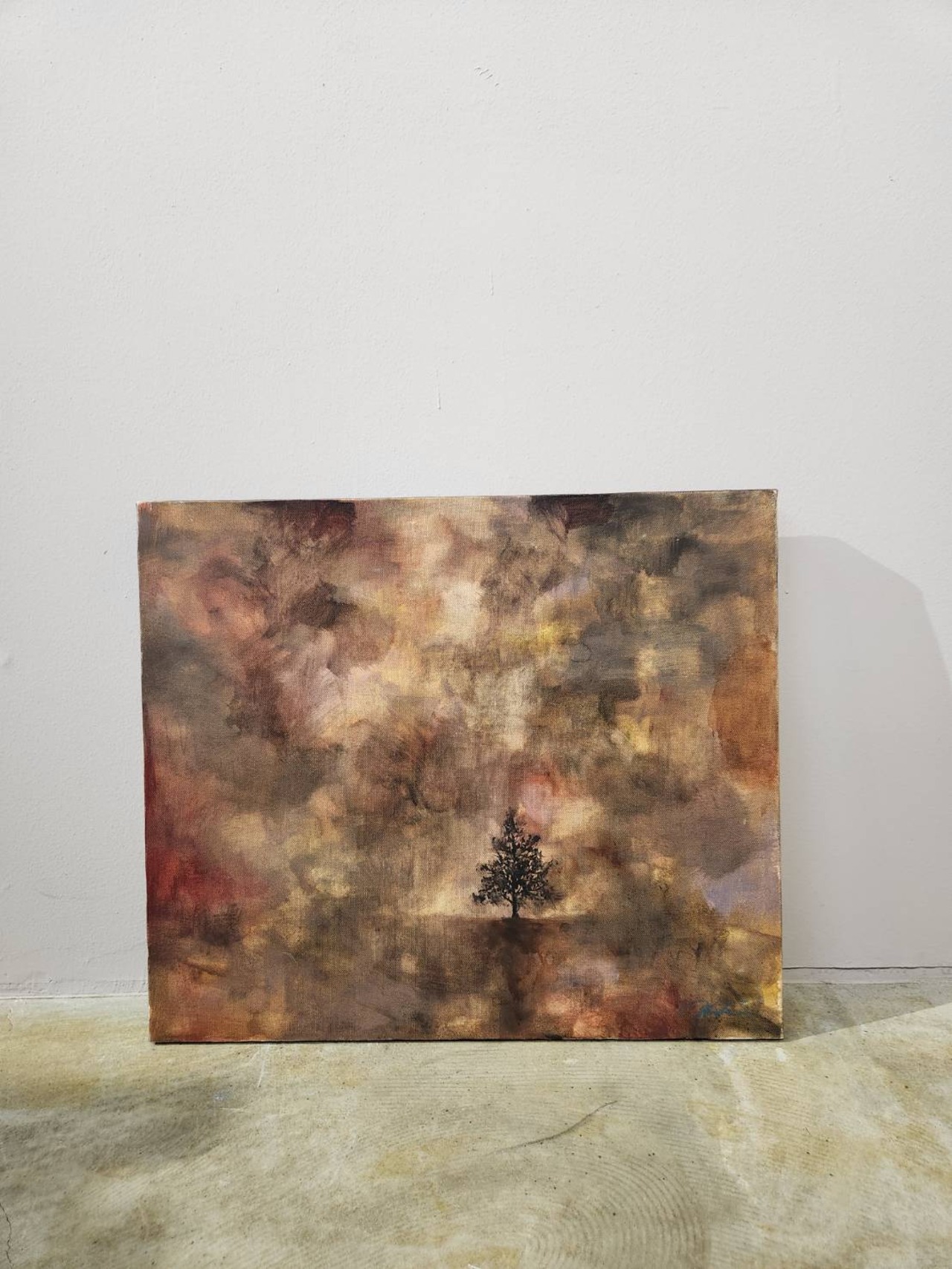 秋の景色を思わせる色調は、落ち着いた雰囲気を好む方や、物憂げで感情を映し出す絵画をお探しの方にぴったりです。