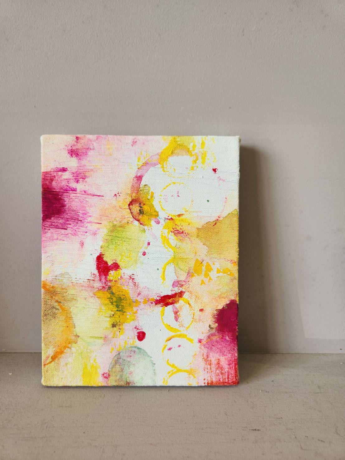 『こころのひだまり』は、日常の中で感じる優しさや安心感をアクリル絵具で表現しています。