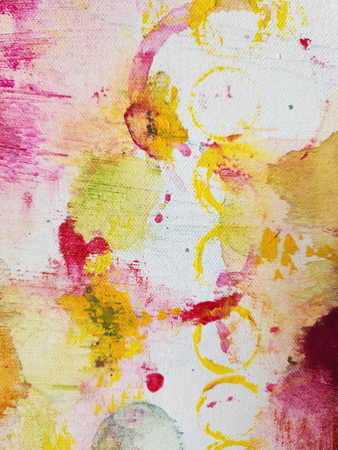 鮮やかな色彩が重なり合い、眺めるほどに穏やかな気持ちへと導いてくれる作品です。