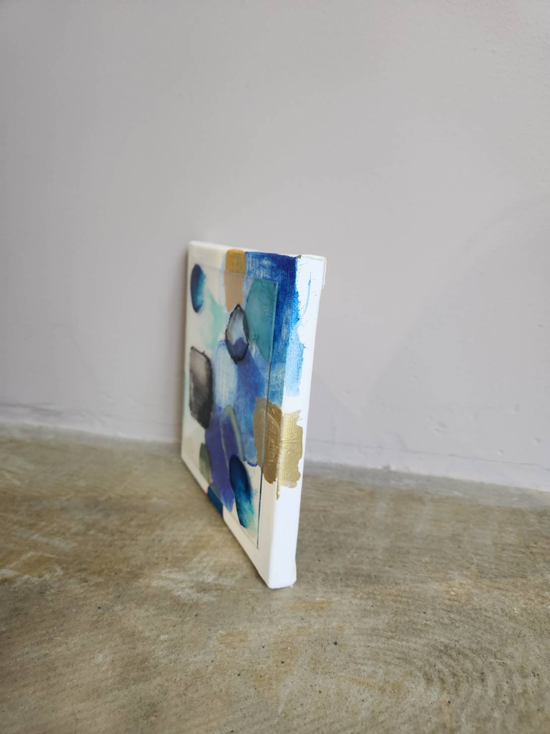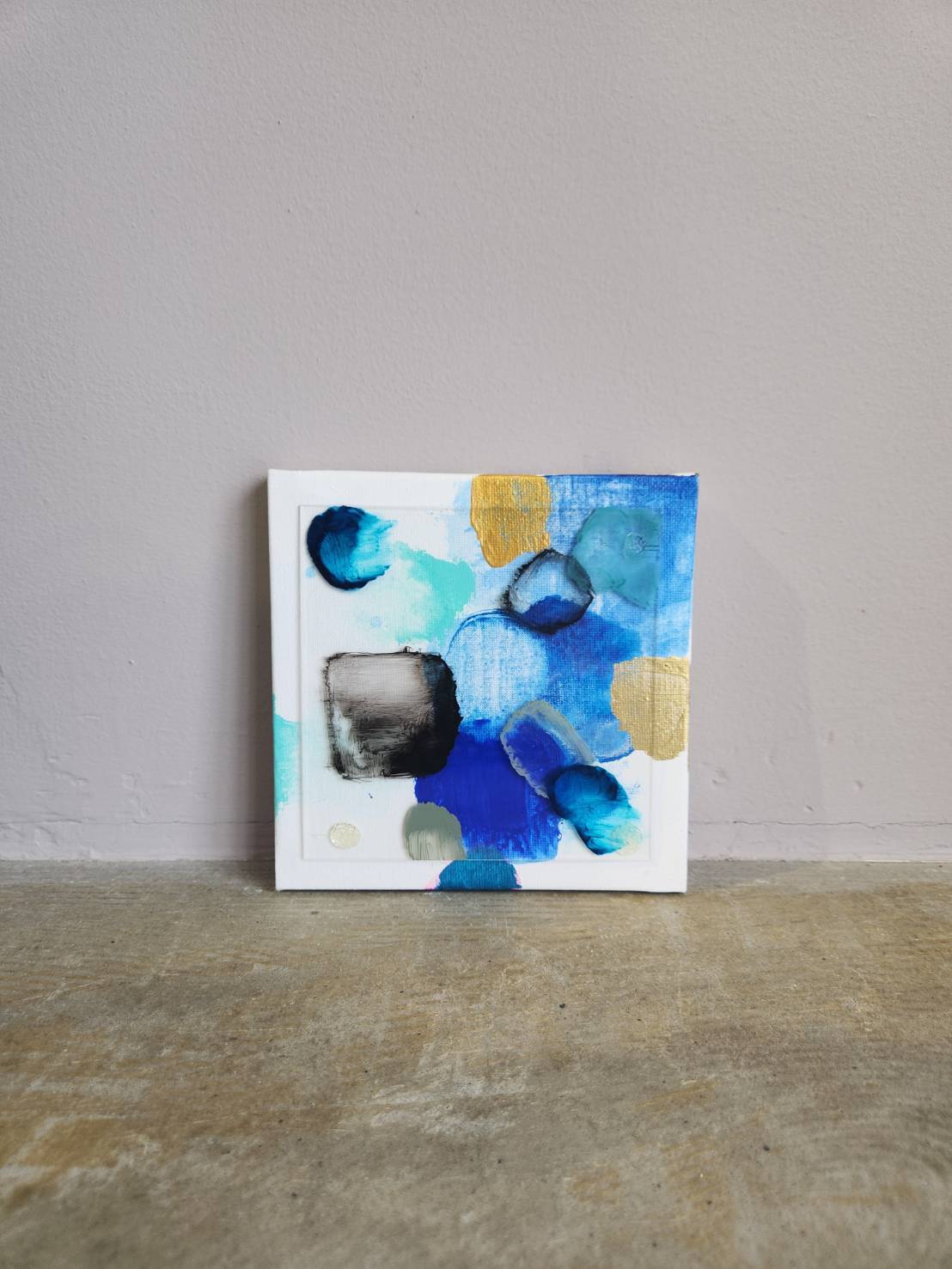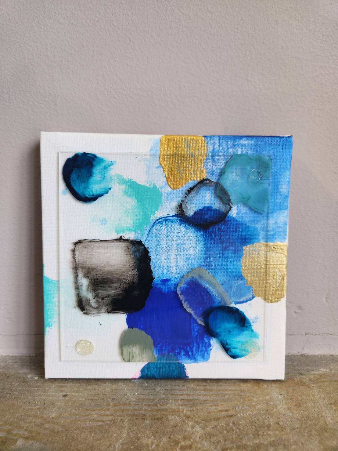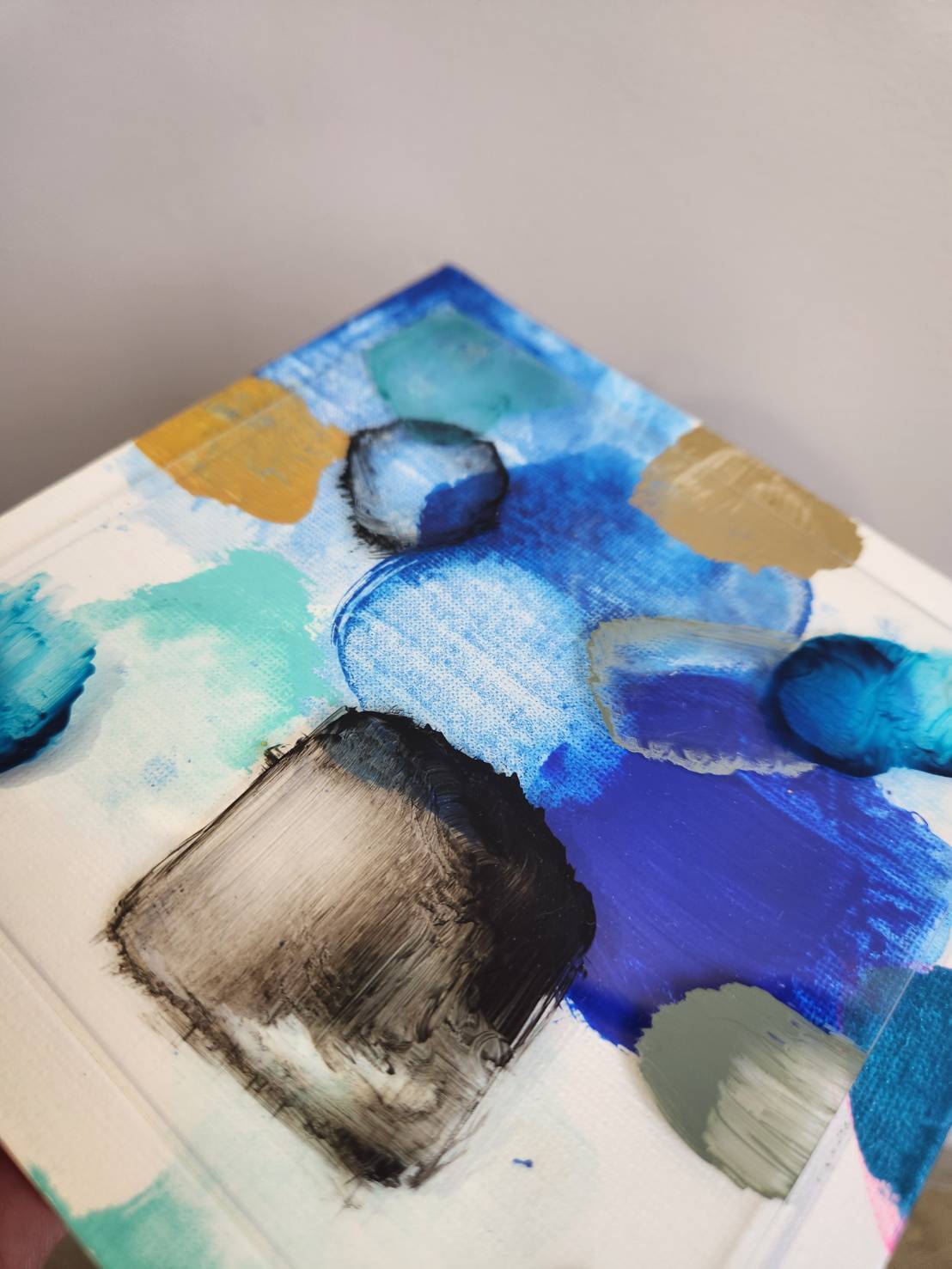 キャンバスの上に広がる鮮やかな色彩と、アクリル板を組み合わせることで生まれた奥行きと透明感。アクリル絵の具の自由な表情が、心の移ろいをやわらかく映し出しています。
