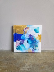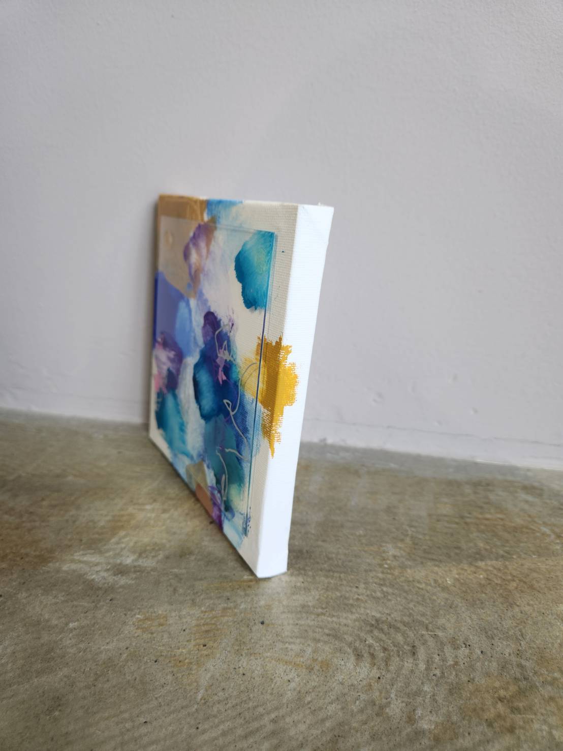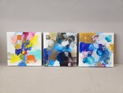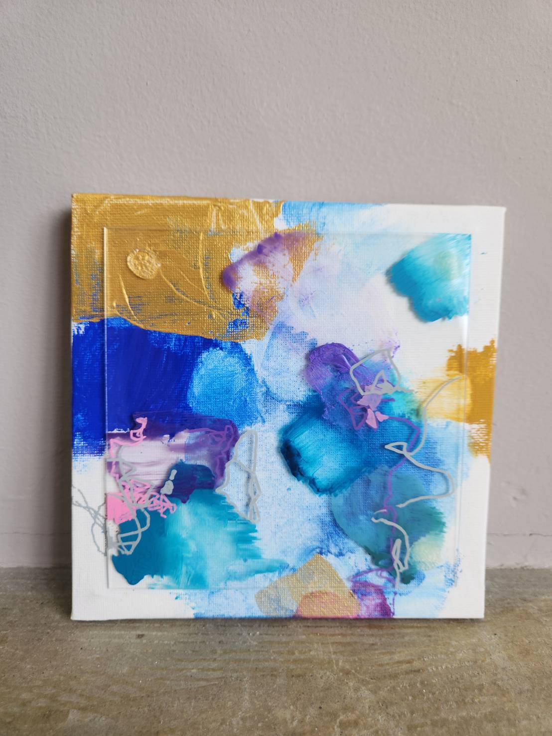 キャンバスの上に広がる鮮やかな色彩と、アクリル板を組み合わせることで生まれた奥行きと透明感。アクリル絵の具の自由な表情が、心の移ろいをやわらかく映し出しています。